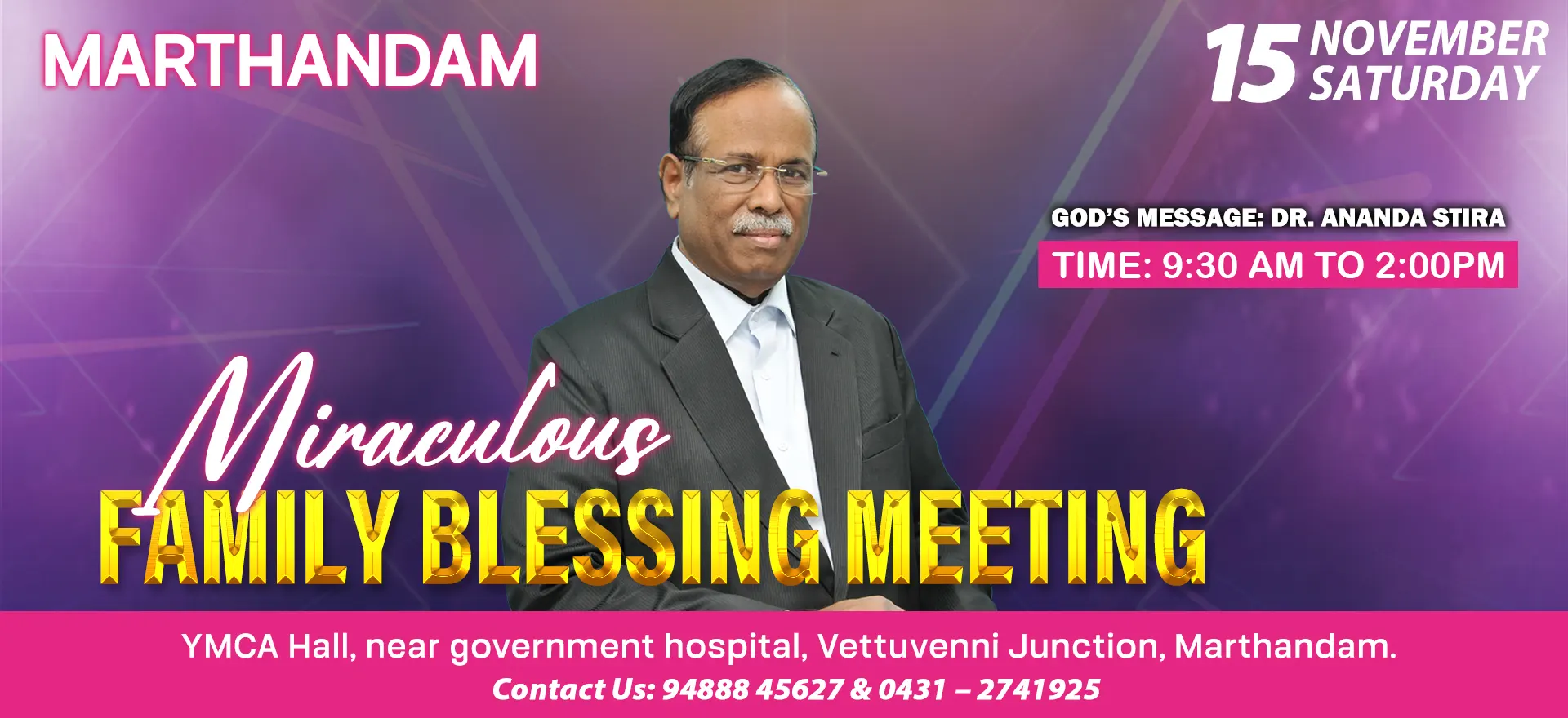 "We had been living in a rented house in Nagercoil for 8 years. Last year, when I attended the meeting, I requested Dr. Ananda Stira to pray for us to get a house of our own. Brother too prayed with burden. After 5 months, the Lord did a miracle and helped us buy a house of our own. Millions of praises to the Lord!"